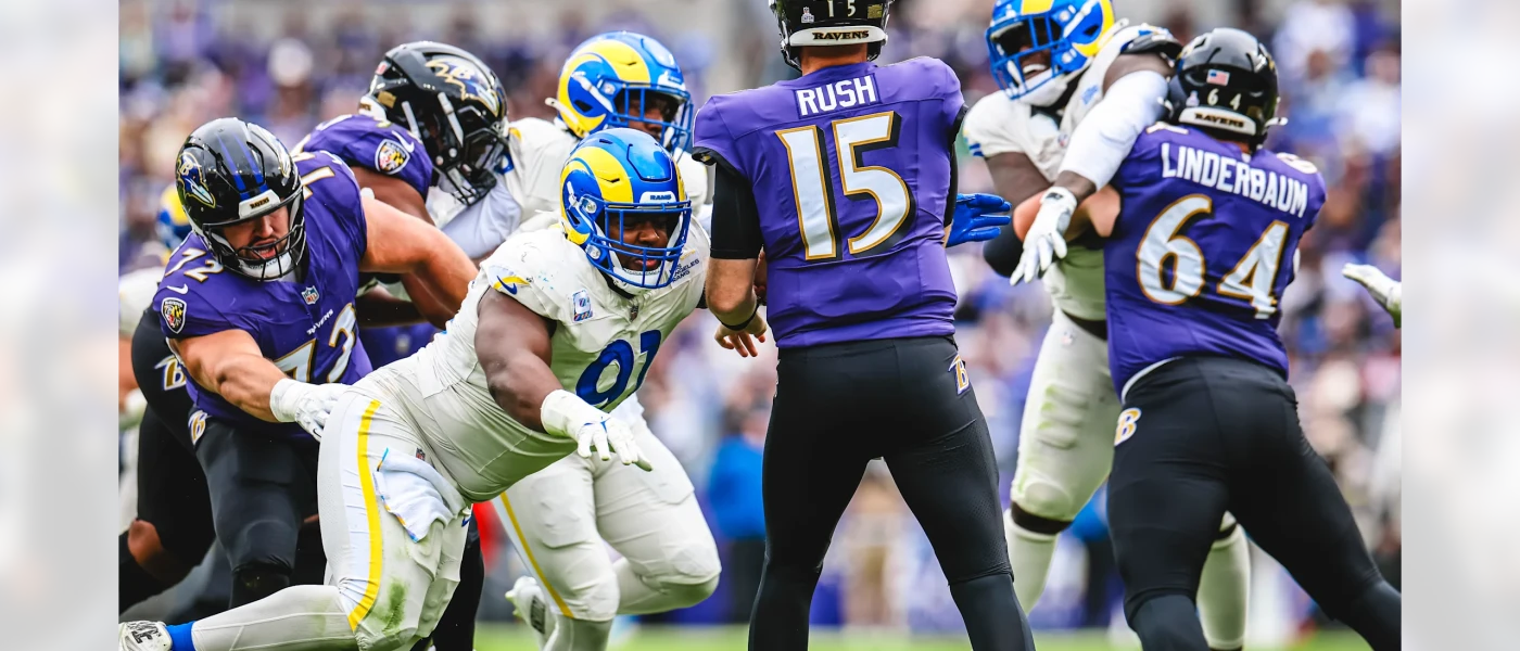 Jared Verse tackelte Zay Flowers und forcierte damit den nächsten Fumble (der erste in der Karriere von Zay Flowers). Quentin Lake schnappte sich das Ei und legte 20 Yds. in die andere Richtung zurück.