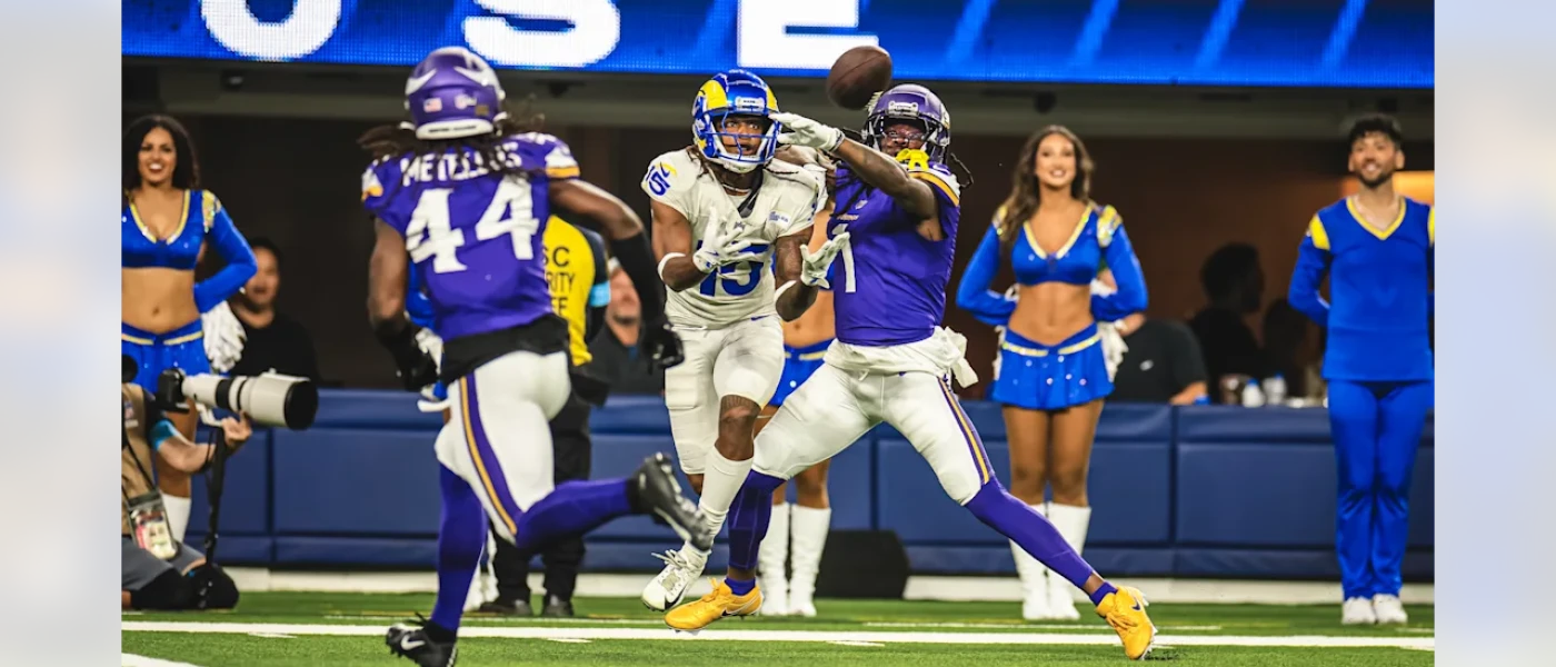 In Hälfte zwei bekamen die Rams den Ball, nach einem super Tip Toe Catch von Nacua (siehe oben) überwarf Stafford dann aber Robinson deutlich und der Ball landete in den Armen von Vikings CB Byron Murphy.